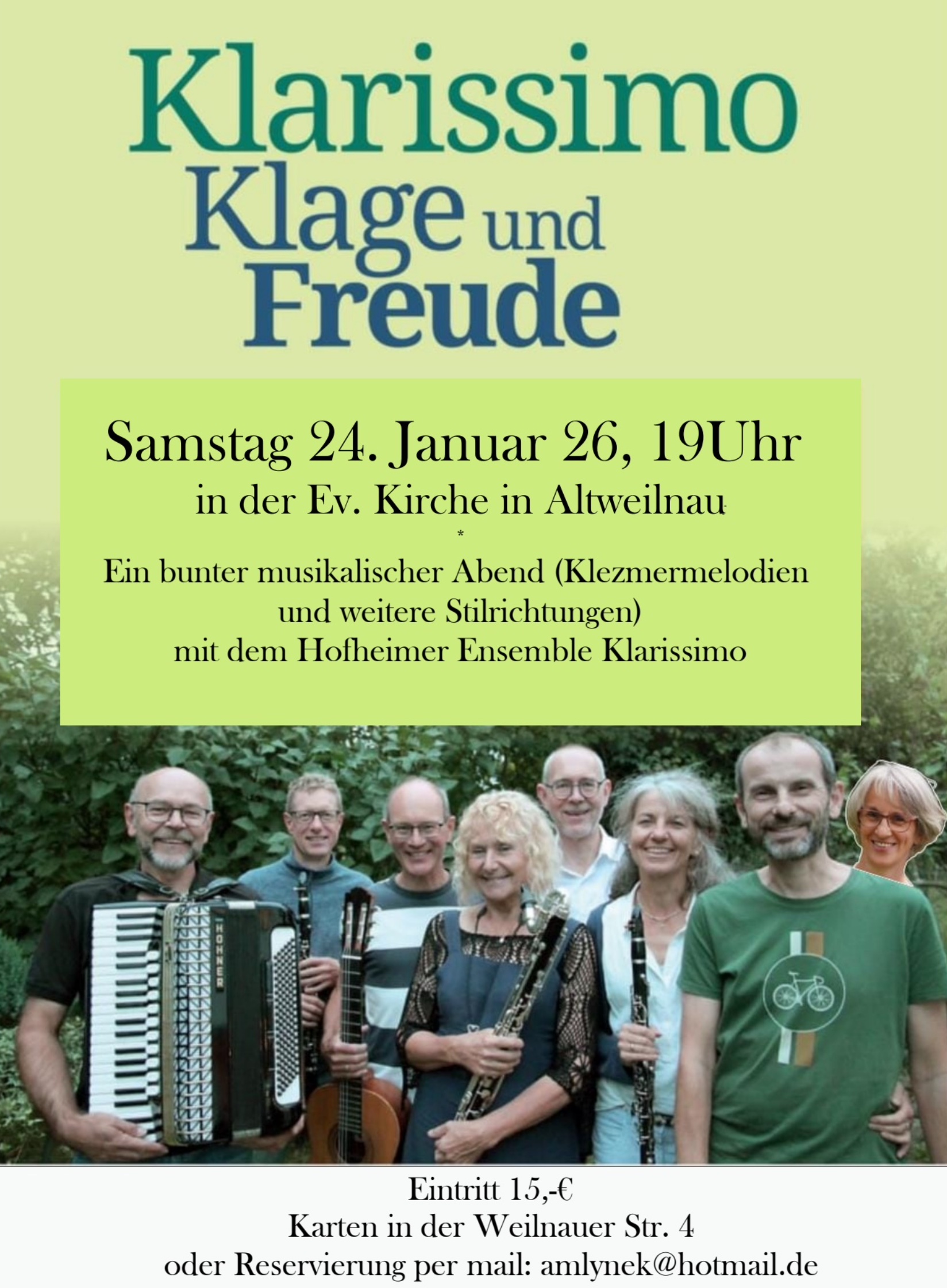 Eintritt 15 ,- € - Karten in der Weilnauer Str. 4 oder Reservierung per mail: